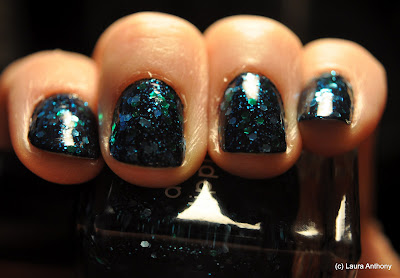Across the Universe went on like a dream! It is the perfect consistency. The glitter distributed itself perfectly without me having to physically place glitter or dig it out of the bottle. If you've used a polish with large glitter before, you know this is a rare quality.